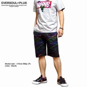 ★カラフルな「NEWYORK」のストライプロゴ総柄プリントでストリートテイスト満点のショートパンツ!ダンス衣装にもオススメ!ゴムウエスト&コットン素材で軽く穿き心地も非常に良い総柄プリントショートパンツです!