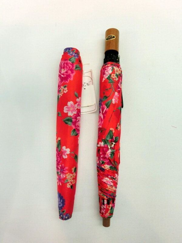 艶やかなナイロン異系糸生地使用の花柄折り畳み傘です。高級感があり二段式でスプリング付きで開きやすく畳みやすい折り畳み雨傘です。