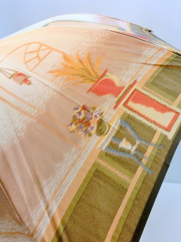甲州(山梨県)で1反1反手作業で丹念に織り上げた甲州織生地使用の軽量金骨日本製傘・ジャンプ雨傘です。伝統の特殊技法ホグシ織でランプ柄を織り上げました。