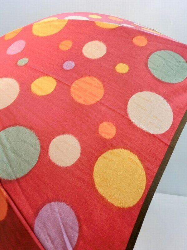 甲州(山梨県)で1反1反手作業で丹念に織り上げた甲州織生地使用の軽量金骨日本製傘・ジャンプ雨傘です。伝統の特殊技法ホグシ織で多色乱水玉柄を織り上げました。