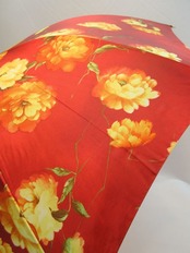 高級感のあるポリエステル100%綾織生地に、豪華な大花柄をプリントした日本製傘ジャンプ雨傘です。鮮やかな赤色で雨の日でも晴れやかな気分になります。