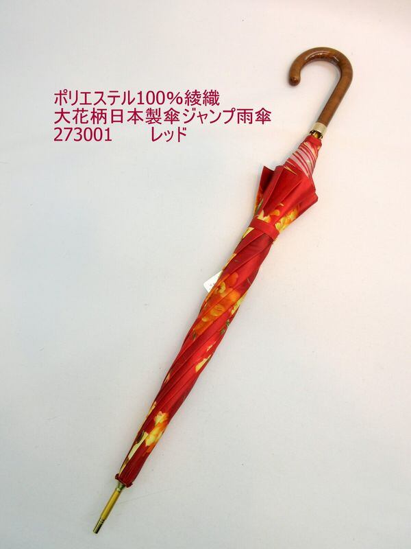 雨傘 傘 ファッション小物 レディースファッション 長傘 婦人 ポリエステル100% 綾織 大花柄 日本製 ジャンプ雨傘 高級感のある 綾織生地 豪華大花柄 プリント 日本製傘 鮮やかな赤色 雨の日でも晴れやかな気分 【3001-11898296】