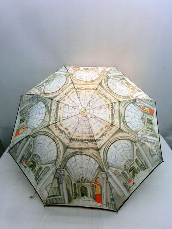 甲州(山梨県)で1反1反手作業で丹念に精魂込めて織り上げた甲州織生地使用の軽量骨の折り畳雨傘です。柄のフチがにじんだようになっているのが特長の特殊伝統技法のホグシ織でドーム柄を織り上げ、2段の軽量骨に張りました。