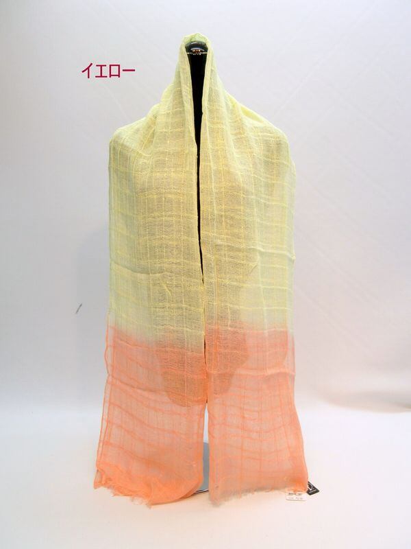 コットン&レーヨン素材を高級感のある格子柄に織った生地にオシャレなオンブレー柄にプリントした春夏新作ストールです。ストールは春夏のオシャレに必須のアイテムです。