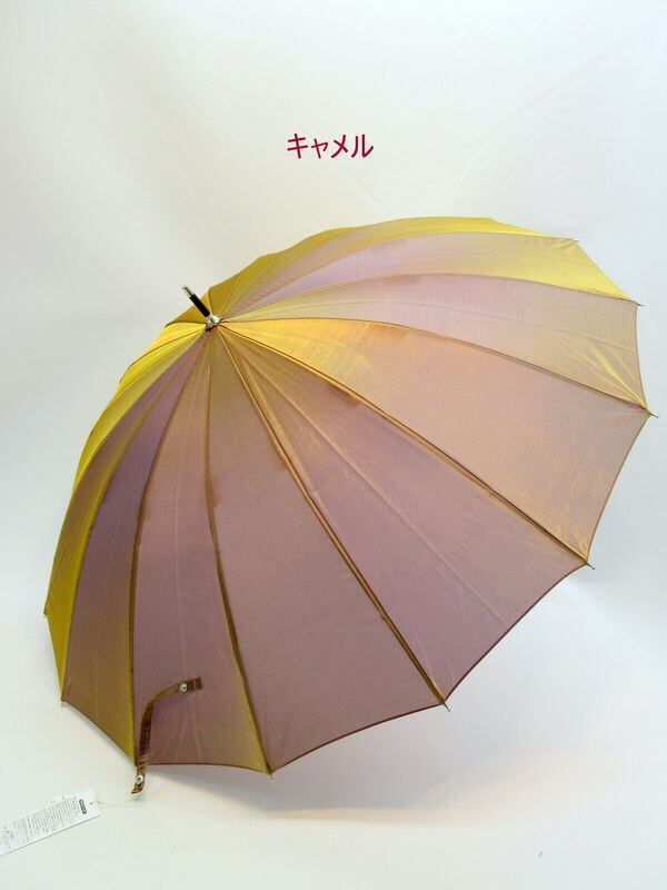 オシャレで高級感のあるポリエステルシャンブレー【玉虫織】生地使用の和調16本骨手開き雨傘です。キラキラと艶感のある玉虫織生地は見る方向で色が違って見えます。