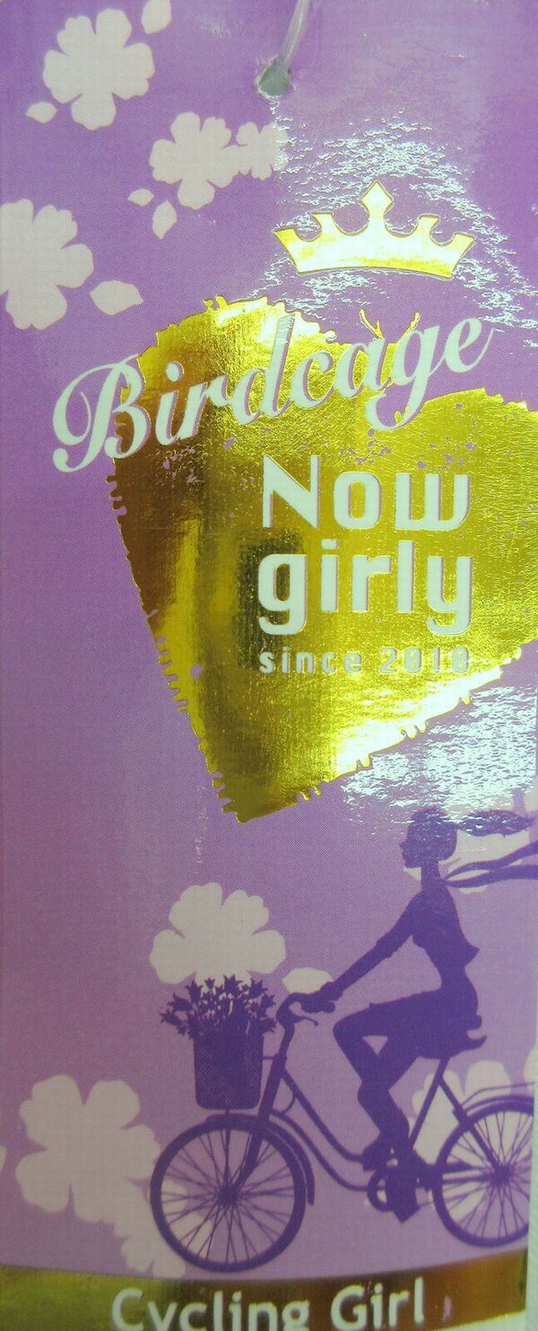 オシャレなバードゲージ型深張のビニール傘です。サイクリングガール柄をプリントした手開きビニール傘です。
