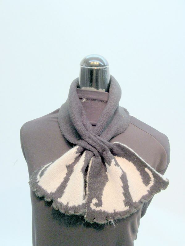 両面色違いで使える猫柄のニットティペット。気分やコーデに合わせて使えます。