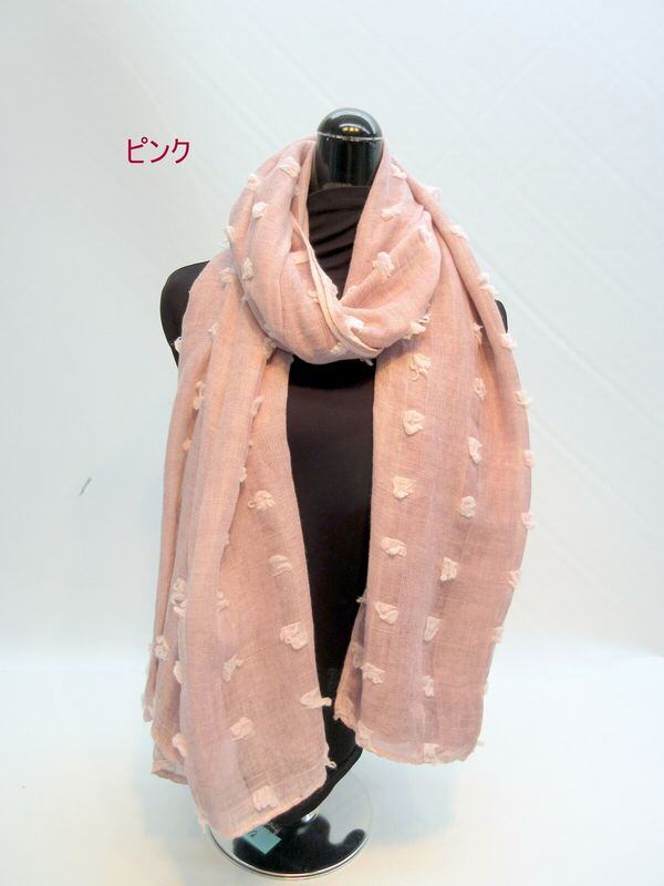 薄生地のポリエステル100%生地にモールひげのアクセントを入れ込みました。ビッグサイズで巻き方次第で色々な秋冬のオシャレをお楽しみください。