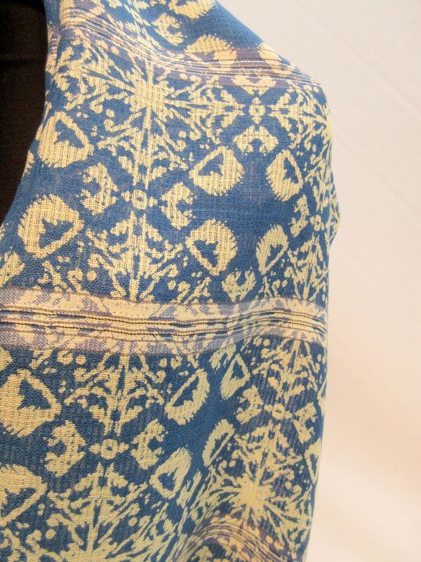 さらっとした麻混生地にボーダー柄とダマスク柄をケミカルプリントしたストールです。高級感のある秋冬のオシャレのポイントに是非お試しください。