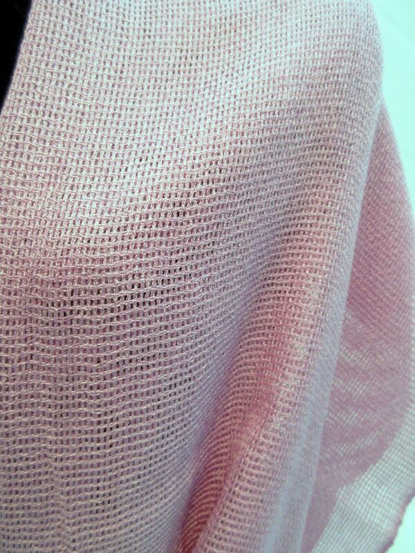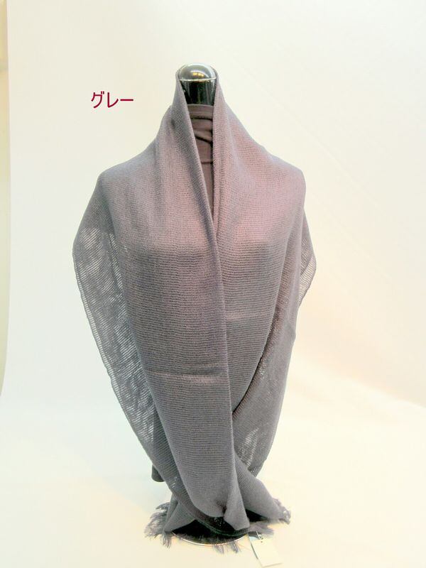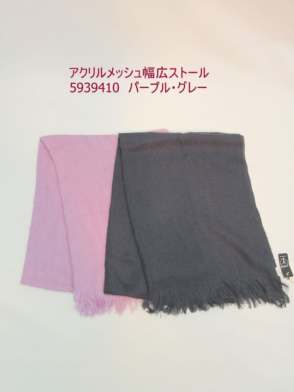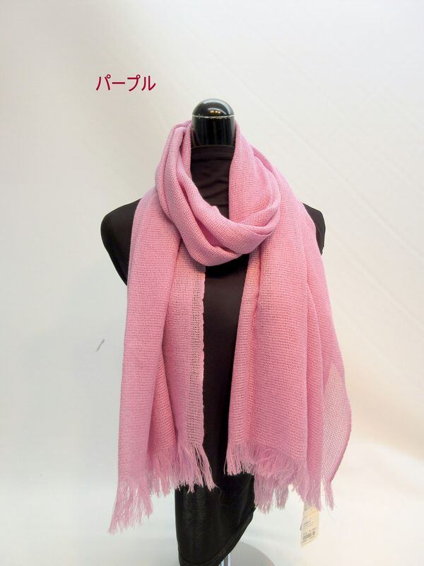 柔らかアクリル生地をメッシュ風に織り上げた無地ストールです。トロンとした柔らかい生地で肩に添いやすく、幅広で使い勝手の良いストールです。