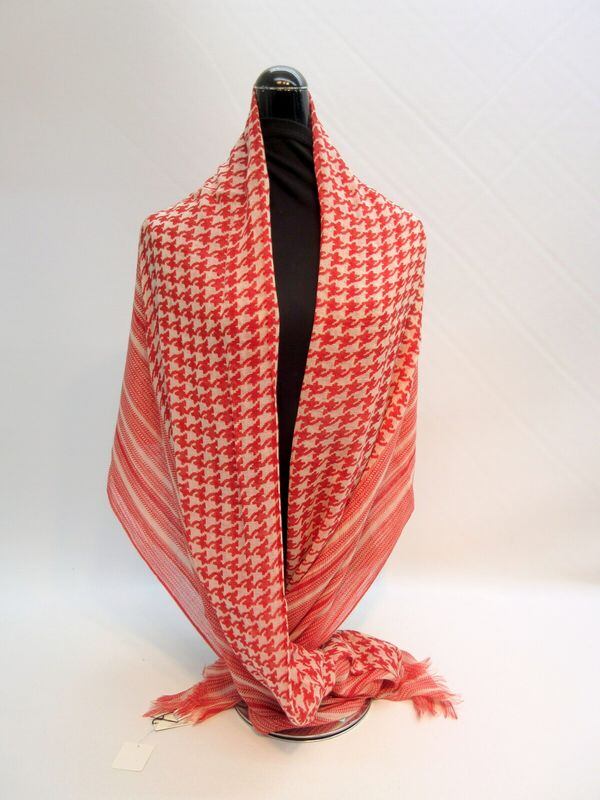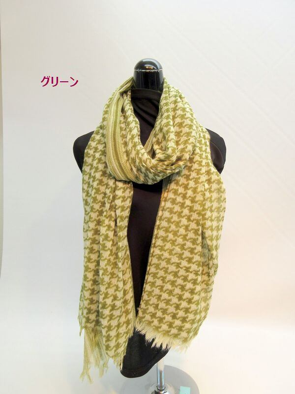柔らかウール&レーヨン生地に千鳥柄とストライプ柄を切り替えたオシャレなストールです。巻き方によって色々な秋冬のファッションが楽しめます。