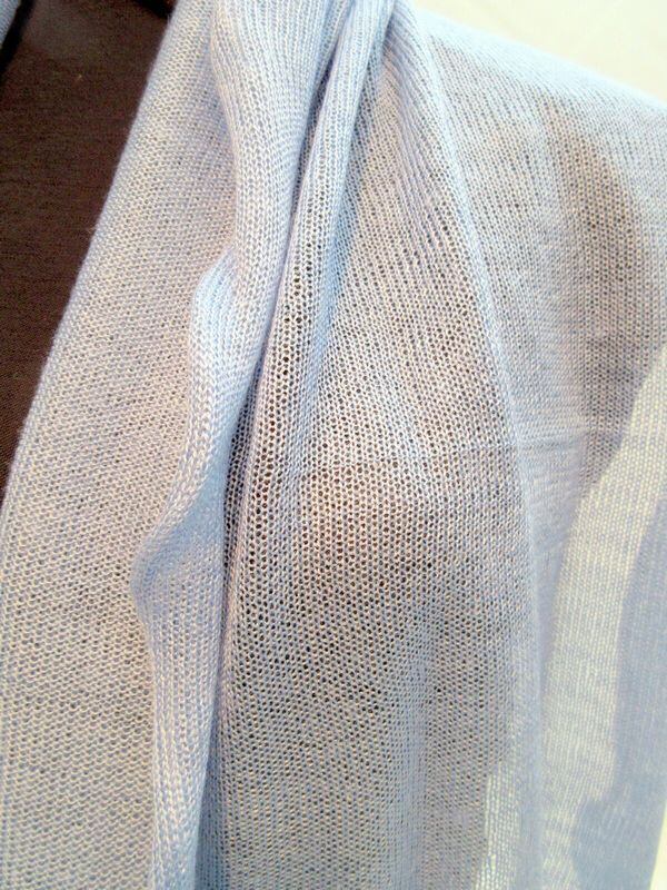 柔らかなアクリルとしなやかなウールの肌触りの良いストールです。メリヤス編みの縁にテグスを入れ、ラメのメロー仕上げがとてもキュート!