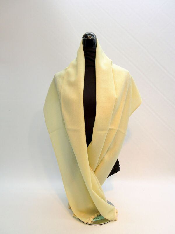 柔らかアクリル無地生地の裾にポンポンを付けました。一味違う無地ストールをお試しください。