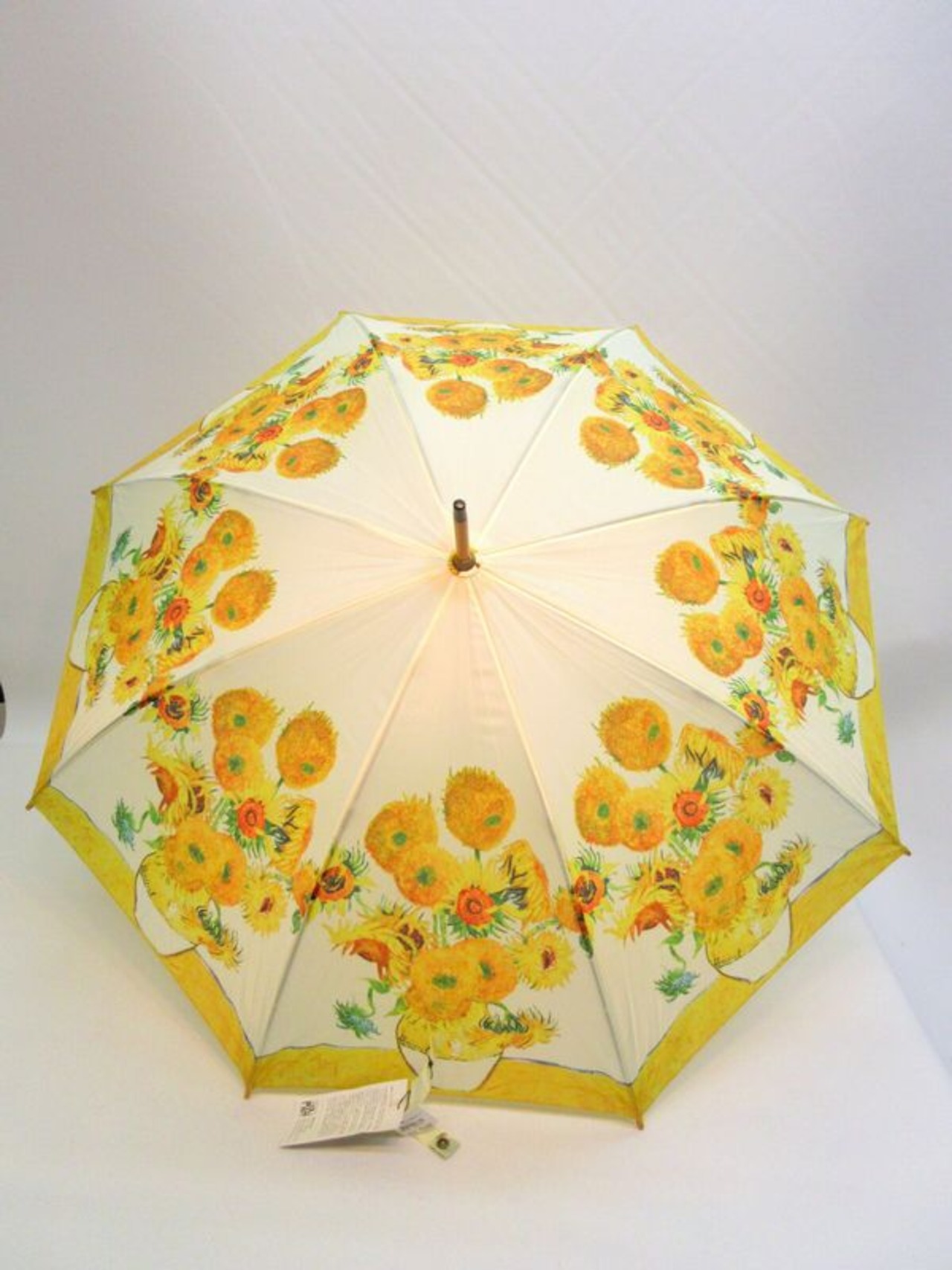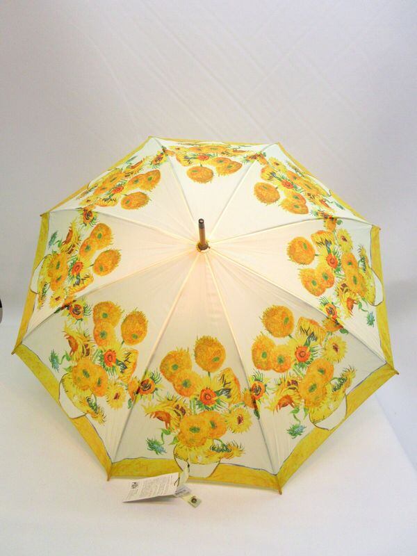 雨傘 傘 ファッション小物 レディースファッション 婦人 長傘 世界の名画 ゴッホ ひまわり柄 グラスファイバー骨 木製 ジャンプ傘 世界の名画シリーズ ジャンプ雨傘 軽くて強い 高級感ある 木製中棒 アンティークゴールドボタン 陣傘仕様 オシャレ 持ちやすい 細身木製手元 【3001-12846688】