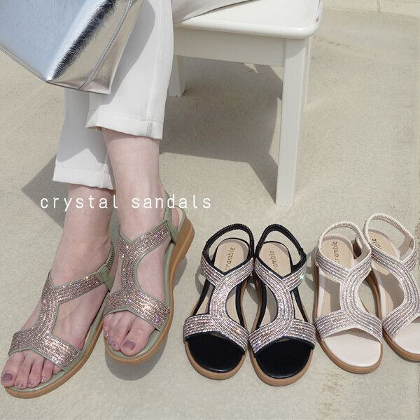 サンダル レディースシューズ レディースファッション 靴 夏サンダル 甲ビジュー ローウエッジ エレガンス ローウェッジ 気軽さ エレガントさ カジュアルコーデ 流行りすたりないデザイン 足首ストラップ ゴム 着脱簡単 幅広く使える 重宝サンダル 【3013-11088929】