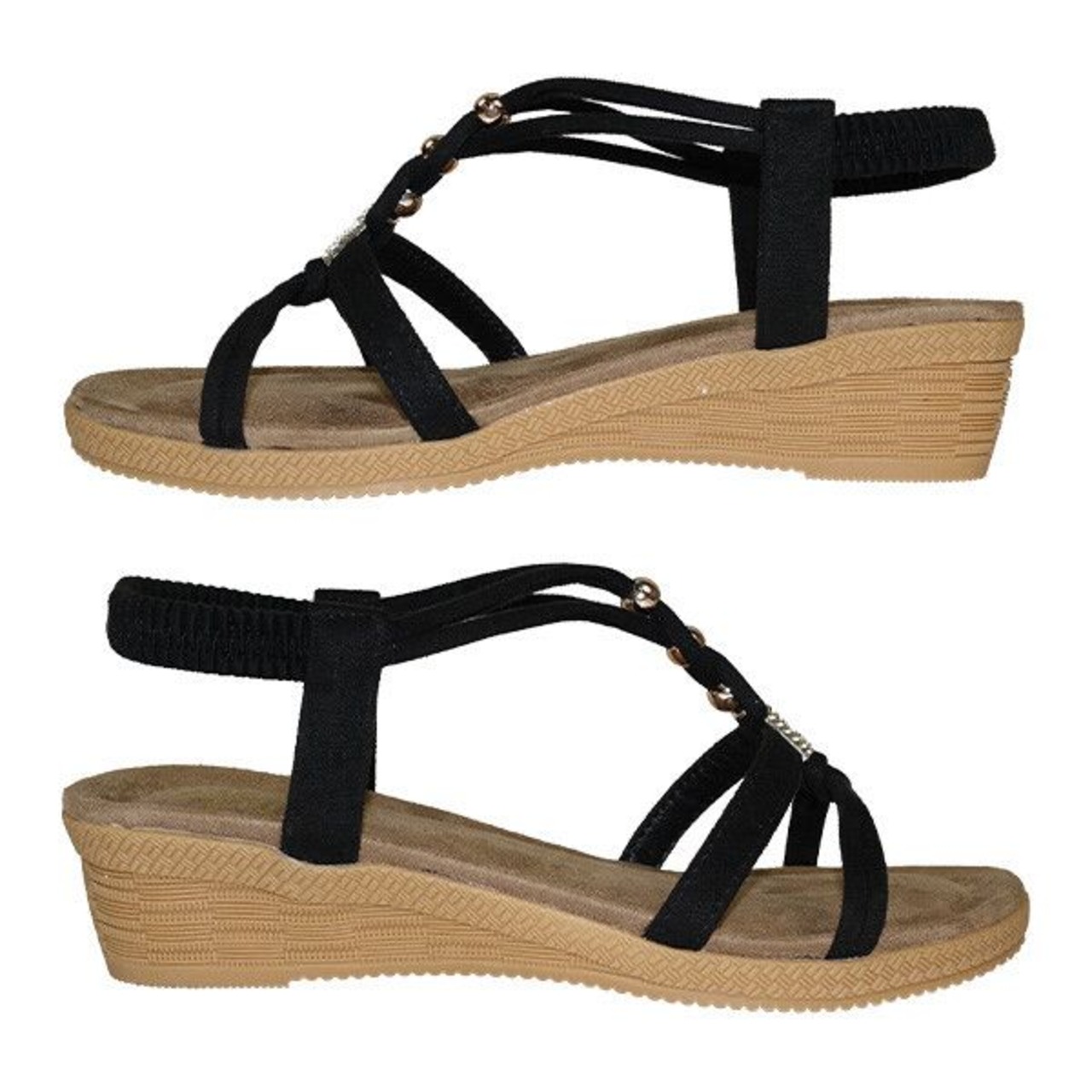 サンダル レディースシューズ レディースファッション 靴 3連パーツ付き ローウェッジサンダル 厚底ウエッジ すっきりシンプルデザイン 夏にぴったり スエード調 落ちついた色目アッパー 3連パーツ ビジュー バランスいい飾り 華やかさプラス ほどよい傾斜 ウェッジヒール 疲れにくい スエード調中敷き 素足で履いて きもちのいい履き心地 【3013-11114054】