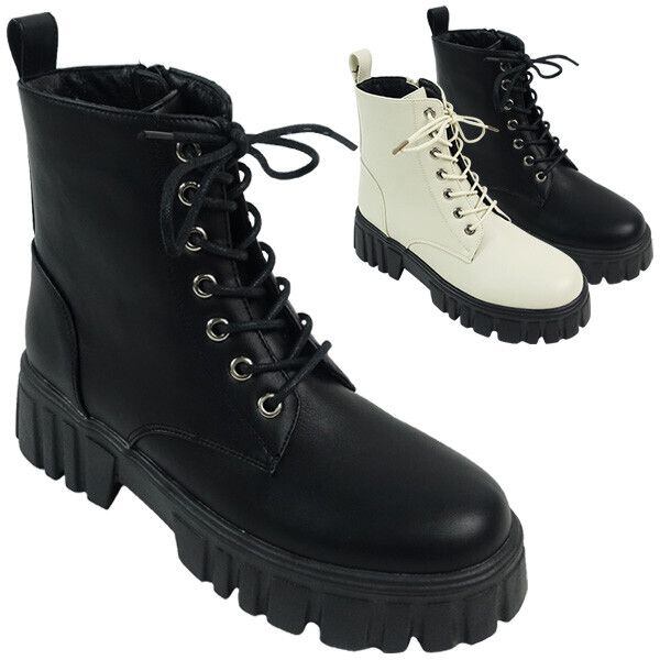 ブーツ レディースシューズ レディースファッション 靴 秋冬ブーツ レースアップ トラックソールブーツ 厚底 ミドル丈 トラックソール トレンド感UP サイドジップ付 着脱しやすい 春まで使える 飽きのこないデザイン 【3013-11535834】